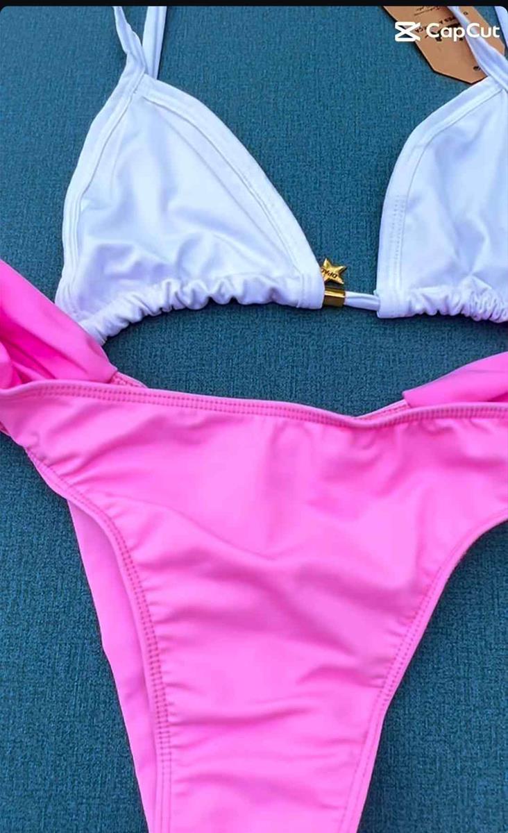 traje de banho de duas peças (top e calcinha), feito geralmente de material elástico e de secagem rápida (como lycra ou poliamida). É a peça ideal para banho de sol e atividades aquáticas, oferecendo conforto, estilo e pouca cobertura. Apresenta-se em inúmeros estilos e modelagens.