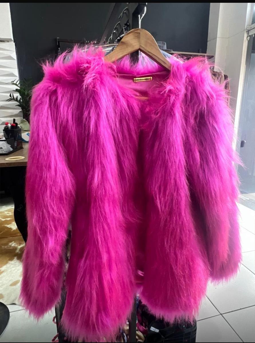 O casaco de pelo sintético pink é aquela peça statement que transforma qualquer look — quentinho, fashion e impossível de passar despercebida. Ideal pra quem ama brilhar com estilo e ousadia!